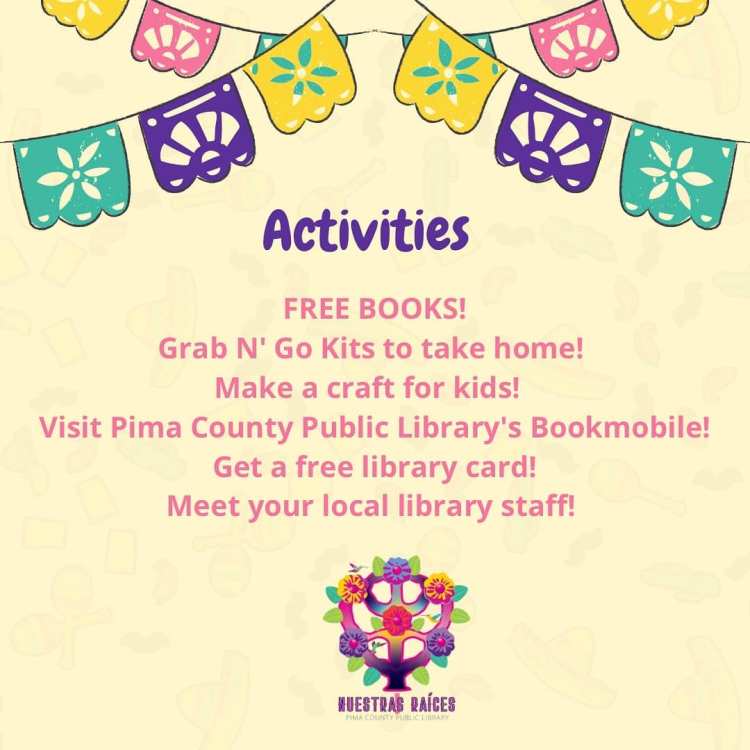 Please join us for this fun family literacy event Galeria Mitotera! Pick up a free book and giveaways, enjoy some music and storytelling, and visit some amazing local vendors! Never been in the Pima County Public Library Bookmobile? Now is your chance! Come be part of the community! We hope to see you there! ![]()